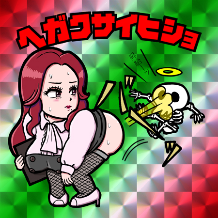 【秘書と社長】シリーズ 2025.10.27 127 ヘガクサイヒショ 素材:角プリ 166 ヘッ?ドコ?ココ 素材:扇プリ ひとこと たぶん社長秘書と思しき女性がビックリマンの有名シール名称をパロった状況になってます。 社長(ガイコツ)は魔界村のアーサーをイメージしました。
